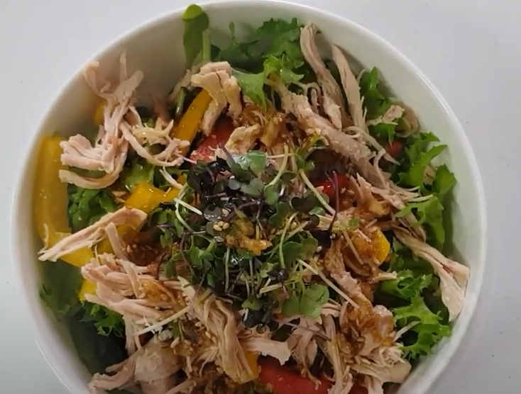 3. 닭가슴살과 숙주를 참깨드레싱이나 발사믹 드레싱을 뿌려 드시면 끝